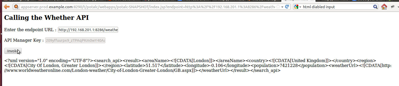 Step 1 : Create a API that gives Washington whether details in sandbox and London whether details in the production environment. Lets call this Weather API. Internally it calls the API of www.worldweatheronline.com